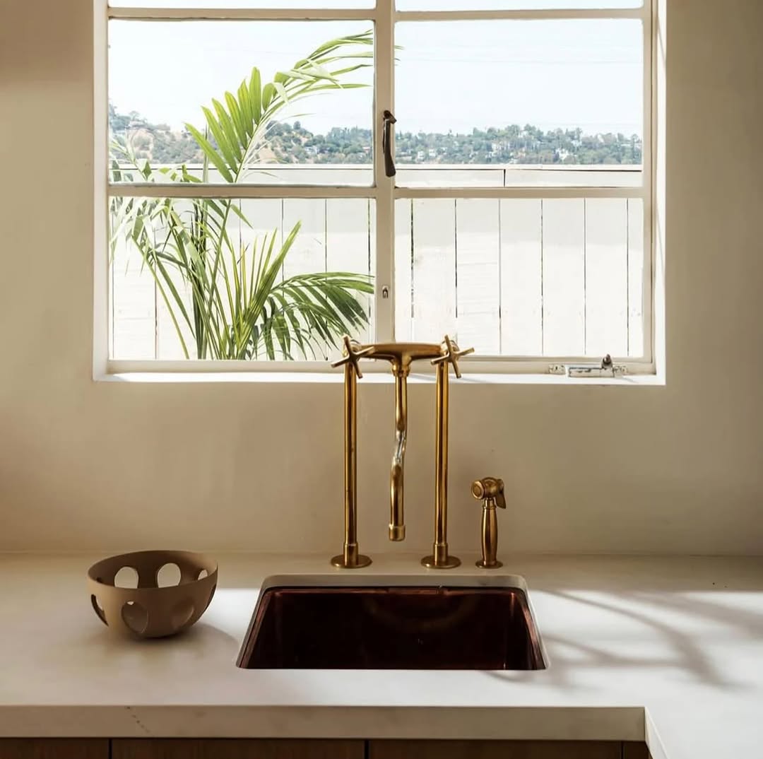 Most of our home fixtures, especially faucets and hardware, are crafted from solid brass — designed to be durable and develop a beautiful natural patina over time