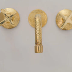 Add timeless elegance to your bathroom with our unlacquered brass 3-hole wall-mount tub faucet. Designed to age beautifully, it develops a unique patina over time, giving your space a classic, vintage look.