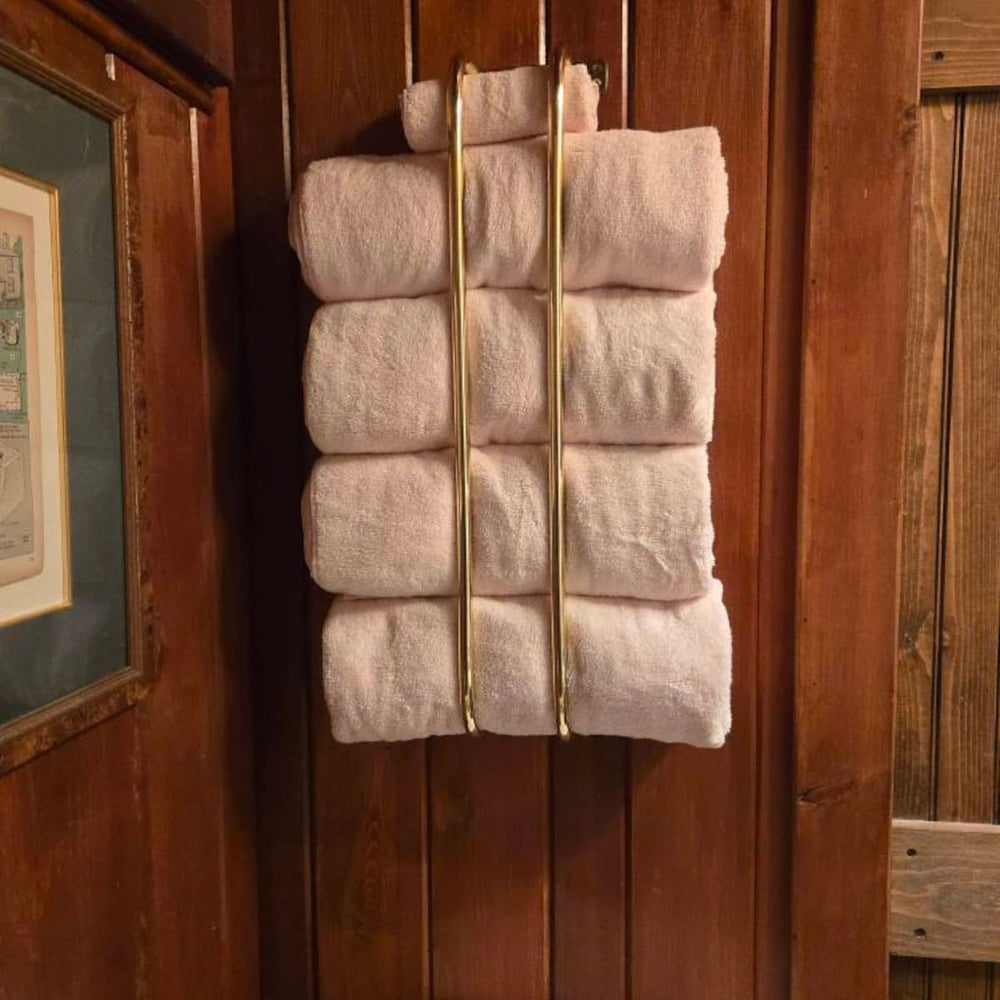Unlacquered Brass Towel Rod Hanger made entirely of solid brass, customized t any size, brass patina over time