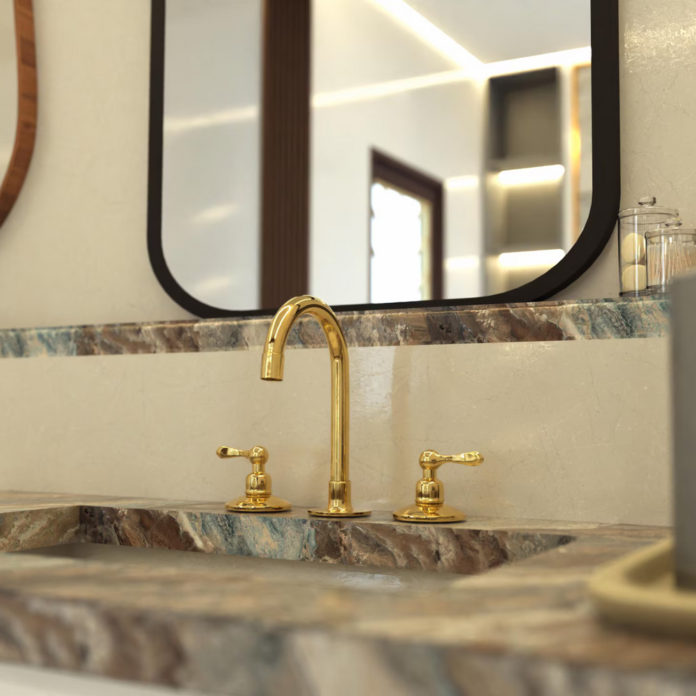 Bring timeless elegance to your bathroom with this Unlacquered Solid Brass Bathroom Vanity Faucet. Featuring a 3-hole deck mount design, this faucet is handcrafted from solid brass inside and out, ensuring durability and a naturally aging patina over time. The vintage-inspired silhouette and classic handles make it a perfect match for traditional, farmhouse, or eclectic bathroom interiors. Designed for easy installation and daily use, it delivers both charm and performance.