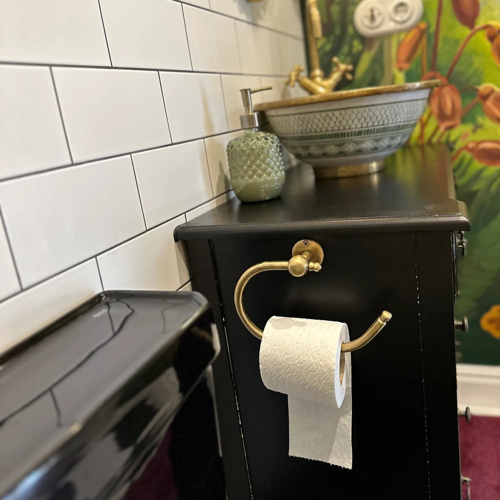 Add a refined touch to your bathroom with this Brass Toilet Paper Holder, designed in a warm bronze finish that complements vintage and modern interiors alike. Crafted from solid brass, this wall-mounted accessory offers both durability and elegance, blending seamlessly into your bathroom decor. Its simple, functional design makes it a stylish and practical choice for any space.